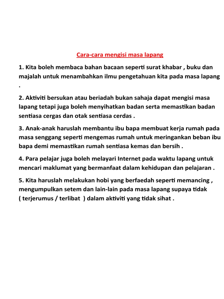 Cara Cara Mengisi Masa Lapang Pdf
